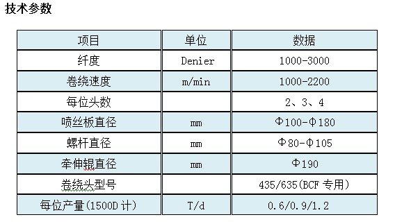 江西宏源丙綸BCF紡絲機技術(shù)參數(shù):